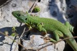 In early spring adult Balkan green lizard / Riesensmaragdeidechse / Lacerta trilineata are easier to photography, because they don't act that shy and bask quite exposed.